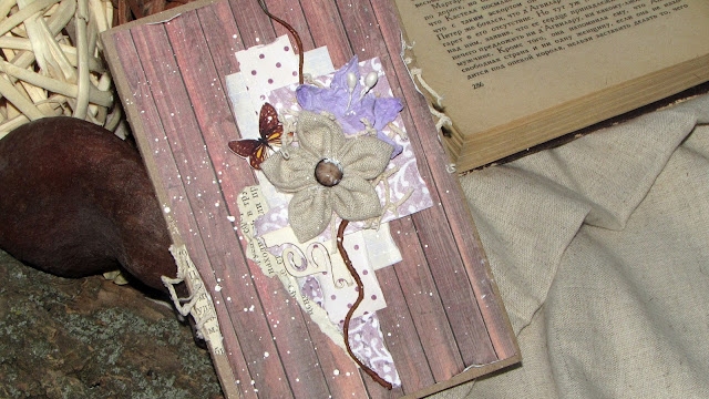 А это первый вариант открытки, которую и взяли, которая и понравилась. Да, там была небольшая доработка, присоединилась пуговица с вышивкой в районе бирки, кружево на левом верхнем углу и посажена на подложку. Не было даже желания фотографировать конечный вариант... Мне напоминает она детскую аппликацию и вообще не хотела ещё показывать в блоге, но у меня родился вопрос... Ваши предложения, как вообще можно расположить три этих элемента: велосипед+калина=макарон (именно со знаками). Может "касам" это легко???